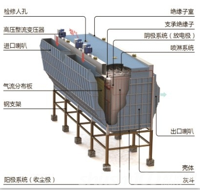 電除塵器的原理及過程:含塵氣體在通過高壓電場進(jìn)行電離過程中,使塵粒帶電,并在電場力的作用下,使塵粒沉積在集塵極上,將塵粒從含塵氣體中分離。整個除塵過程可劃分為四個階段:荷電、定向移動、粘附和沖洗。